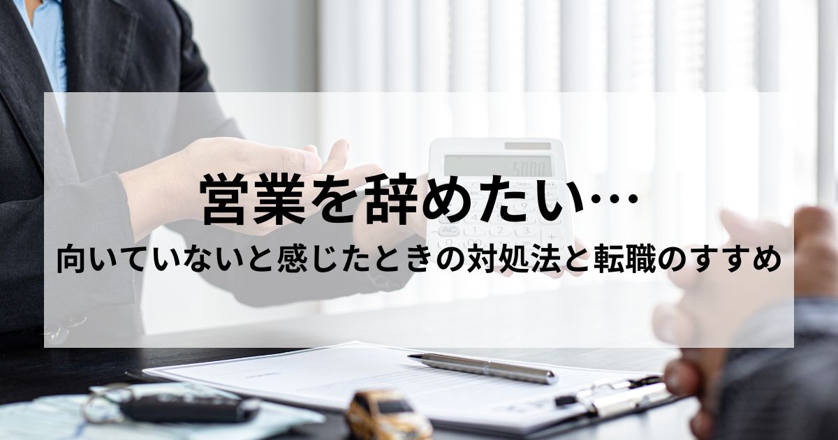 - 営業を辞めたいと感じるのは甘えではなく、環境との「相性」の問題
